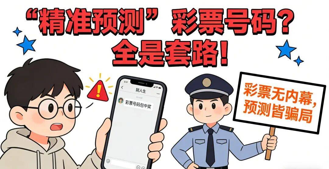 核心套路:骗子利用“免费”“包赔”等手段施以小利,骗取信任后,诱导受害者加大投入。彩票开奖结果是完全随机的,任何声称能“精准预测”“内幕泄密”的都是诈骗。